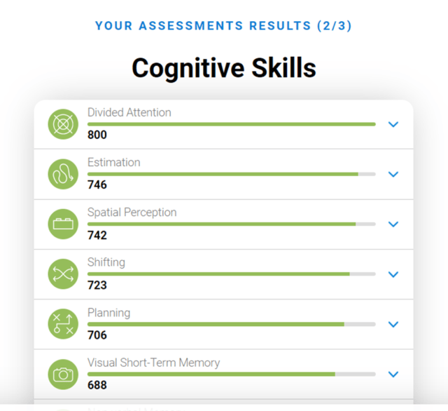 However, these are all just the FIRST part of the end-result. There are at least two more pages that include a cognitive profile that related to driving that are broken down into:
