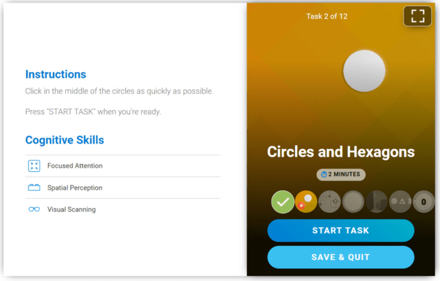 • Shape appearance memory and reaction, where the user must remember if a shape or audio-spoken word has appeared in the sequence or not, and in what medium.