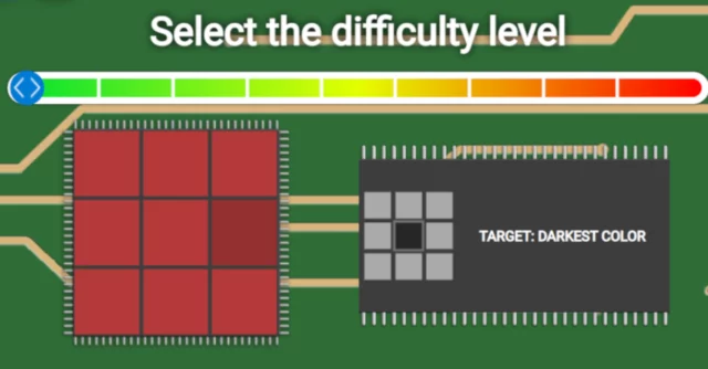 The premise itself is simple, you’ll have a number of squares of the same color. Eg. purple. But one of the squares will be slightly darker or lighter than the others. All you have to do is click that square. As the levels get harder there will be more subtle shade/tint variations to make you concentrate even more.