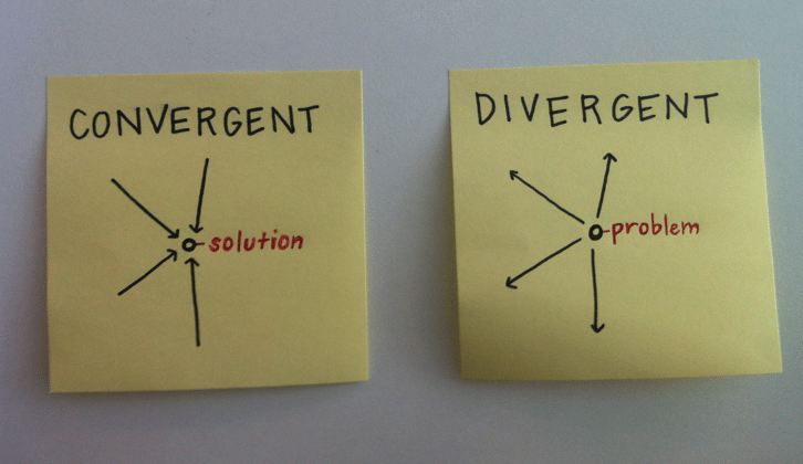 Unser Bildungssystem begünstigt das konvergente Denken. Dies sucht eine Entscheidung zwischen verschiedenen Alternativen. Es ist reflexiv und analytisch. Das kommt dir bekannt vor, oder? Das divergente, im Gegensatz dazu, ist eine kreative und originelle Art, mehrere Antworten auf ein Rätsel oder eine Herausforderung zu finden. Beide Formen sind notwendig und ergänzen sich gegenseitig.