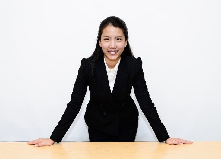 Esta postura la podemos realizar en reuniones de trabajo para imponer autoridad. La cabeza, al estar un poco más adelantada con respecto al cuerpo transmite interés por nuestra audiencia y ayuda a esta a atender a nuestras palabras, y más si está acompañada con una sonrisa, como en la imagen.
