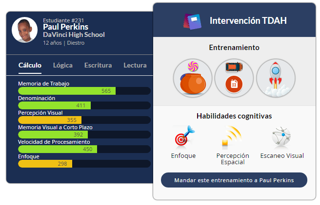 Utilizando los resultados de esta evaluación inicial, CogniFit programa automáticamente una dinámica de entrenamiento cerebral personalizado, diseñado específicamente para mejorar las necesidades cognitivas de cada estudiante.