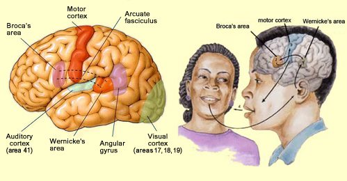 - Fluence : elle est conservée dans le cas de l’aphasie de Wernicke contrairement à l’aphasie de Broca. En effet, Les aphasiques de Wernicke sont en capacité d’écrire et de parler à un rythme quasi-normal en mettant le ton bien que ce dernier ne soit pas toujours conforme à la situation.
