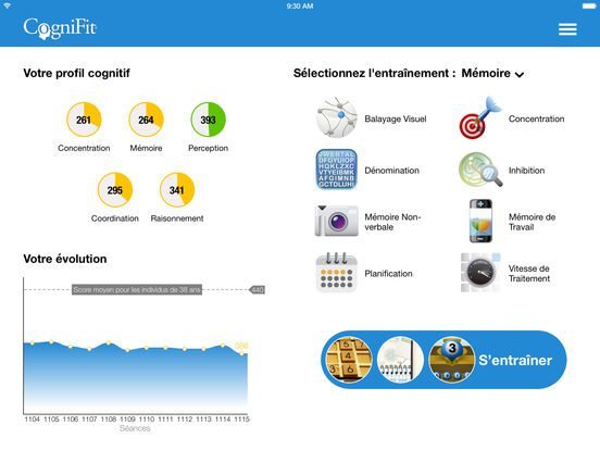 CogniFit est le programme leader en évaluation cognitive et en stimulation cérébrale. Ce programme est validé par la communauté scientifique et est utilisé par les écoles, les universités et les hôpitaux du monde entier. CogniFit permet de mesurer et d’entraîner de manière professionnelle et fiable la capacité de concentration, le niveau d’attention et beaucoup d’autres capacités cognitives fondamentales dans les processus de la mémoire.
