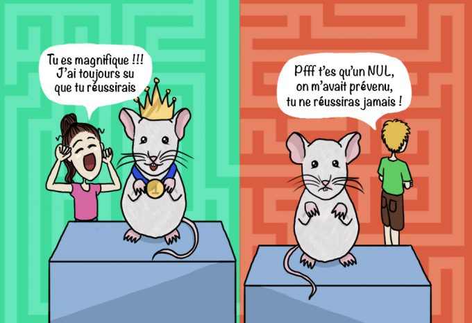 - Les prophéties auto-réalisatrices (ou effet Pygmalion) : Les résultats obtenus par Steele et Aronson (1995) ne sont pas sans évoquer l’effet Pygmalion de Rosenthal et Jacobson (1968), particulièrement étudié dans le contexte de la performance sportive ou scolaire. De fait, cette théorie affirme que les attentes d’un enseignant envers ses élèves peuvent déterminer les performances de ces derniers. Concrètement, si vous êtes plutôt mauvais élève en mathématiques dès le début de l’année, votre professeur risque alors de développer peu d’attentes à votre égard et peu d’espoir de vous voir progresser dans cette matière (si vous êtes vraiment malchanceux, il peut même carrément vous répéter à longueur d’année scolaire que de toutes façons vous êtes nul et qu’ainsi vous ne ferez jamais tel ou tel métier). Si effectivement votre moyenne en mathématiques est toujours aussi basse en fin d’année, alors la prophétie auto-réalisatrice se sera…… réalisée. Si aujourd’hui les études sur le sujet ne font pas consensus, on constate quand même que 5 à 10% des performances scolaires seraient expliquées par des prophéties auto-réalisatrices, ce qui n’est pas négligeable.