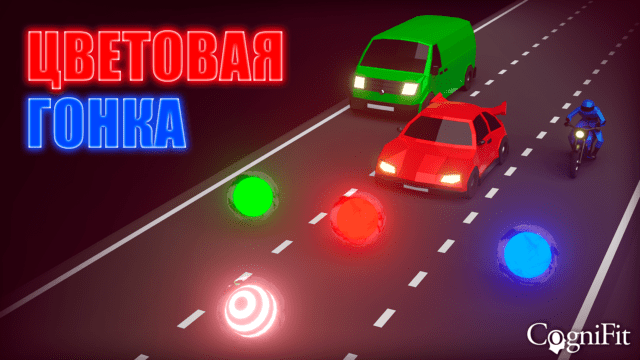 Цветовая гонка: аркадная гоночная игра для тренировки времени реакции, мониторинга, когнитивной гибкости и оценки