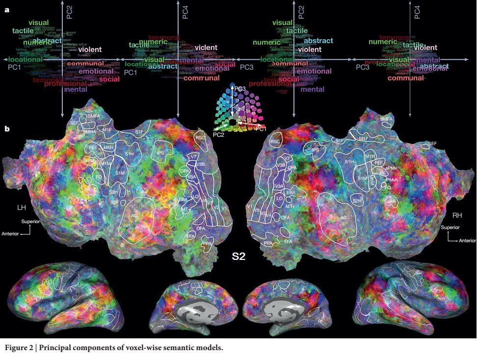 Where are words located in the brain? A team of scientists created an interactive map of the areas of the brain that are activated when certain words are heard. This semantic brain map shows how language is distributed through the cortex and both hemispheres of the brain, grouping words by meaning and constructing a brain dictionary.